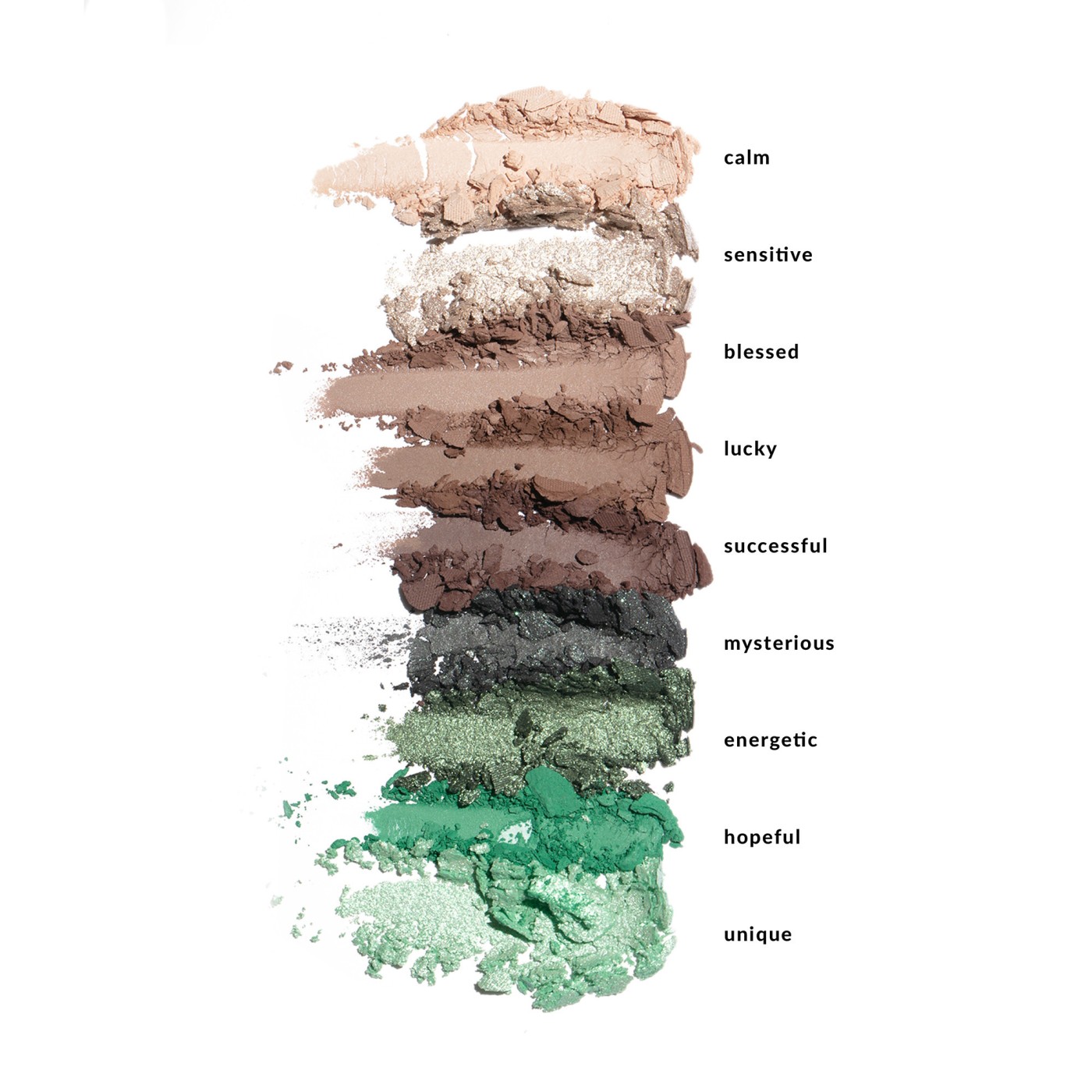 Versiunea verde a paletei este destinată iubitorilor de nuanțe reci de maro în combinație cu nuanțe de verde, deschizând un spectru complet de posibilități pentru a crea un aspect clasic sau un machiaj monocrom strălucitor.