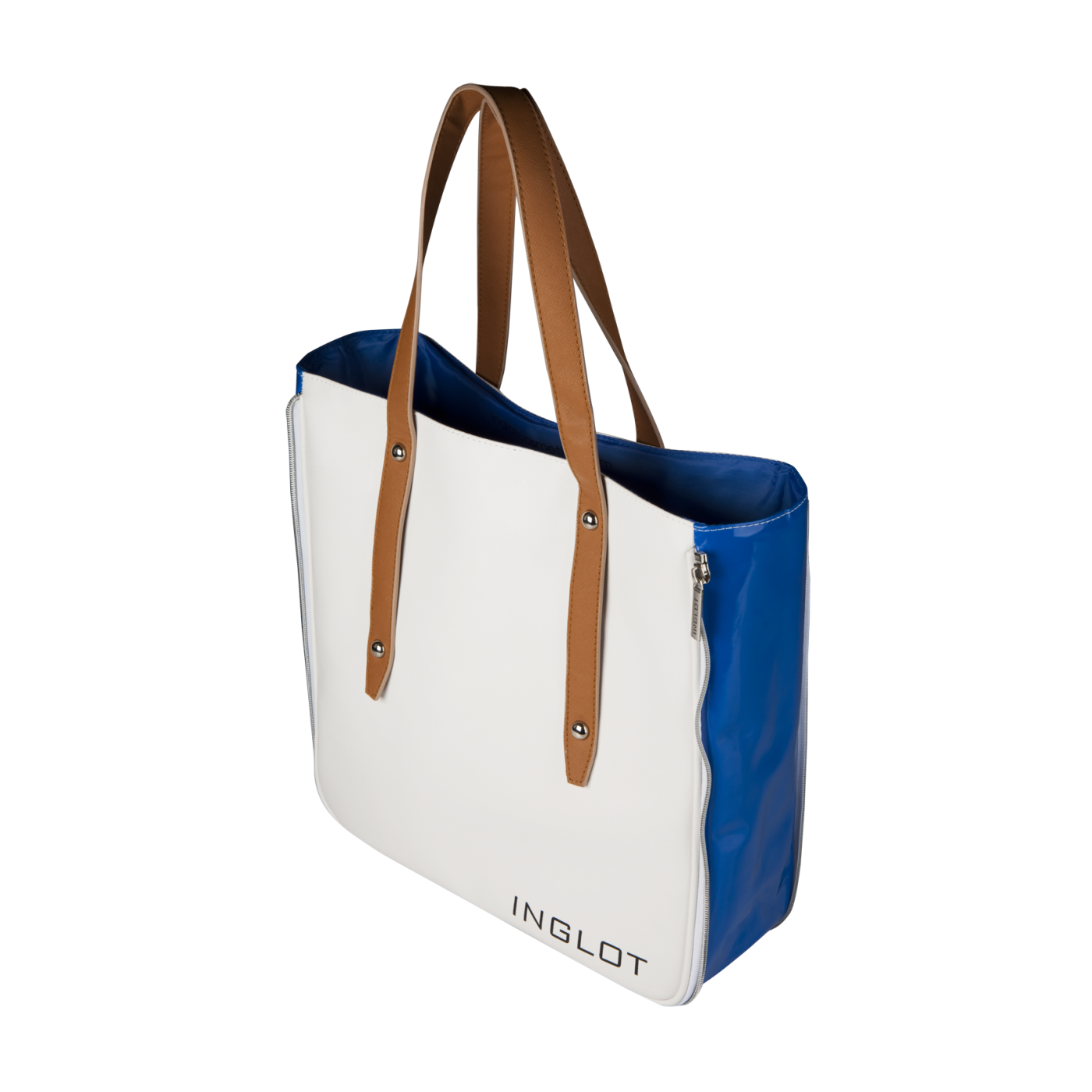 Эта вместительная и стильная сумка сделает ваш шопинг очень приятным. Поставляется в белом варианте в сочетании с синим оттенком под боковыми молниями.